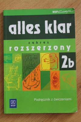 IMG_8521.JPG podręcznik z ćwiczeniami ALLES KLAR 2b, zakres rozszerzony, wyd. WSiP, K.Łuniewska, U.Tworek, Z.Wąsik, +płyta, ćwiczenia uzupełnione tylko w niektórych miejscach ołówkiem, nie ścieram, bo komuś może się przydać :) stan bardzo dobry, cena: 18zł.