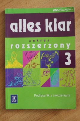 IMG_8524.JPG podręcznik z ćwiczeniami ALLES KLAR 3, zakres rozszerzony, wyd. WSiP, K.Łuniewska, U.Tworek, Z.Wąsik, ćwiczenia uzupełnione tylko w niektórych miejscach ołówkiem, nie ścieram, bo komuś może się przydać :) stan bardzo dobry, cena: 17zł.