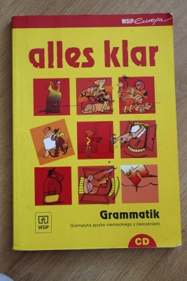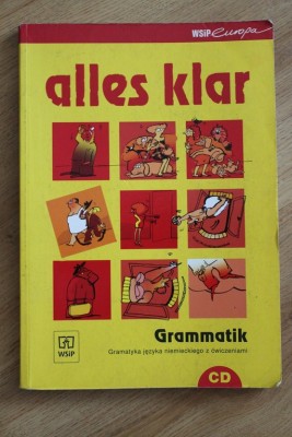 IMG_8527.JPG gramatyka j.niemieckiego z ćwiczeniami ALLES KLAR, wyd. WSiP, M.Nietrzebka, S.Ostalak, bez płyty, dodatkowo karty A4 z gramatyką, ćwiczenia nieuzupełnione, stan bardzo dobry, cena: 18zł.